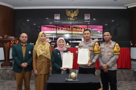 Kapolres Sukabumi Kota, AKBP Ari Setyawan Wibowo bersama Ketua IDI (Ikatan Dokter Indonesia) Cabang Kota Sukabumi, Dr. Kote Noordhianta menandatangani perjanjian kerjasama nomor : 163/IDI.SI/V/2024 dan perjanjian Kerjasama nomor : PKS/02/V/HUK.81.1./2024 tentang pencegahan dan penanganan Stunting di wilayah Kota Sukabumi. Penandatanganan perjanjian kerjasama antara Polres Sukabumi Kota dan IDI Kota Sukabumi tersebut diselenggarakan di aula Graha Rekonfu Polres Sukabumi Kota, Senin (13/5/2024) pagi.
