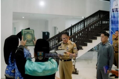 Kepala Dinas Komunikasi, Informatika, Statistik dan Persandian (Diskominfotiksan), Suryadi, S.IP., M.M., menginformasikan bahwa, Bupati Pesisir Barat (Pesibar), Dr. Drs. Agus Istiqlal, S.H., M.H., menyerahkan secara simbolis petikan Surat Keputusan (SK) Bupati Pesibar tentang pengangkatan Pegawai Negeri Sipil (PNS) dan pengambilan sumpah/janji PNS, di Lobby Gedung A Lantai 1 Komplek Perkantoran Pemkab Pesibar, Senin (6/5/2024).