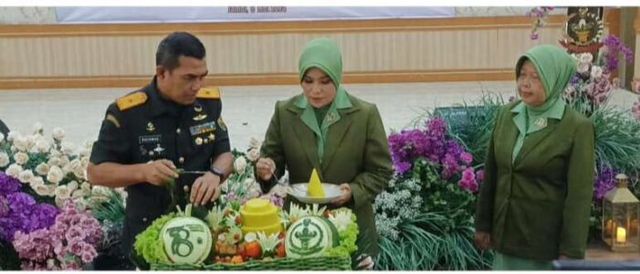 Bertempat di Balai Prajurit Makorem 042/Gapu dilaksanakan Syukuran HUT Ke – 78 Persit Chandra Kirana yang dihadiri langsung oleh Ketua Persit Kartika Chandra Kirana Koorcab KOREM 042/Gapu Ibu Leni Rachmad didampingi Danrem 042/Gapu Brigjen TNI Rachmad (08/05)