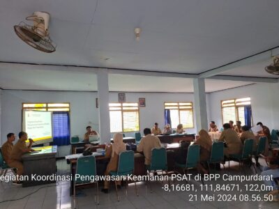 Bertempat di kantor Balai Penyuluhan Pertanian kecamatan Campurdarat, Dinas Ketahanan Pangan Kabupaten Tulungagung menggelar rapat koordinasi pengawasan keamanan pangan segar asal tumbuhan, Selasa (21/5/2024).