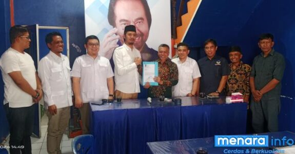 Jajaran Pengurus DPC Partai Gerindra dan DPD Partai Nasdem, saat menerima berkas Erman Safar sebagai Calon Kepala Daerah
