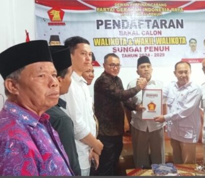 Kandidat Bakal calon Walikota Sungai Penuh Alfin SH., resmi mendaftar ke Partai Gerakan Indonesia Raya di DPC Kota Sungai Penuh Provinsi Jambi.