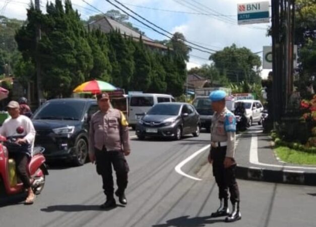 Jelang KTT WWF, Personil Polsek Baturiti Berikan Pelayanan Kamseltibcarlantas Pada Jalur Utama Obyek Wisata