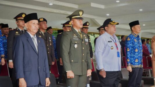 Kapolres Langkat AKBP Faisal Rahmad Husein Simatupang,S.I.K,SH,MH bertindak selaku inspektur upacara. Tampak juga Sekretaris Daerah Kabupaten Langkat beserta para asisten, Staff Ahli beserta kepala OPD Pemerintah Kabupaten Langkat.
