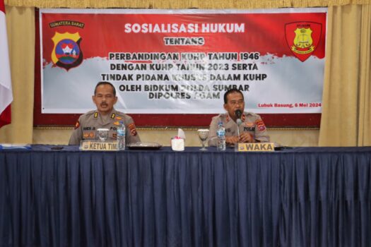 Kegiatan sosialisasi hukum tersebut digelar, bertujuan untuk meningkatkan kemampuan dan sumber daya personil Polres Agam tentang KUHP tahun 2023 yang akan diaplikasikan pada tahun 2026 nanti.