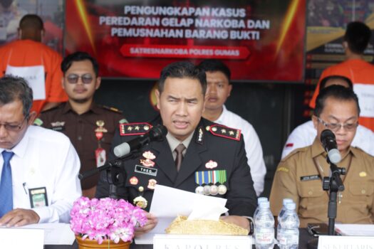 Kapolres Gunung Mas, Polda Kalteng AKBP Theodorus Priyo Santosa, S.I.K. dalam sambutannya menyampaikan bahwa selama periode Februari hingga Mei 2024, Satuan Reserse Narkoba Polres Gunung Mas telah berhasil mengungkap 6 kasus narkoba dengan total barang bukti sabu seberat 205,84 gram. Dari pengungkapan tersebut, 8 orang tersangka berhasil diamankan, semuanya laki-laki dewasa.