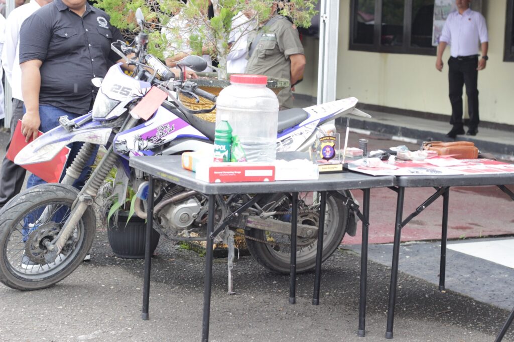 “Barang bukti yang dimusnahkan pada kesempatan ini adalah sabu seberat 184,68 gram (berat bersih 177,41 gram) yang diamankan dari tersangka (S), Sabu tersebut disita dari pengungkapan 1 kasus narkoba pada bulan Mei 2024,” ujar AKBP Theo.