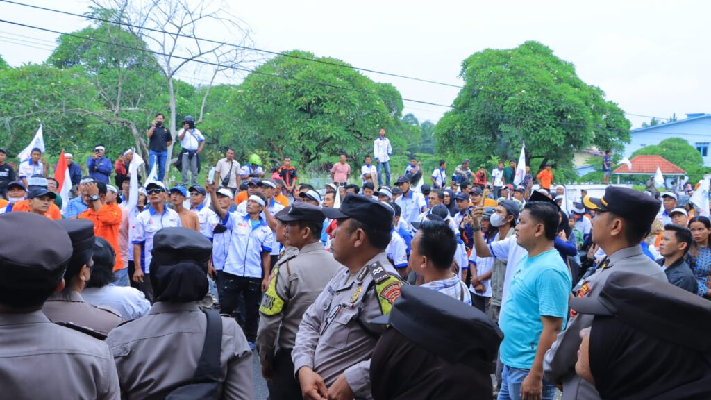 Kapolres Labuhanbatu AKBP Dr. Bernhard L. Malau, S.I.K., M.H. Melalui Kabag Ops Polres Labuhanbatu menyampaikan “Dalam rangka pengamanan Aksi Solidaritas dan Bentuk Simpati dalam peringatan Hari Buruh (May Day) yang dilakukan oleh Pimpinan Cabang Serikat Pekerja Perkebunan dan Kehutanan Federasi Serikat Pekerja Metal Indonesia (PC.SPPK.FSPMI) Kabupaten Labuhanbatu, Polres Labuhanbatu telah melaksanakan pengamanan terbuka dan tertutup secara efektif.”