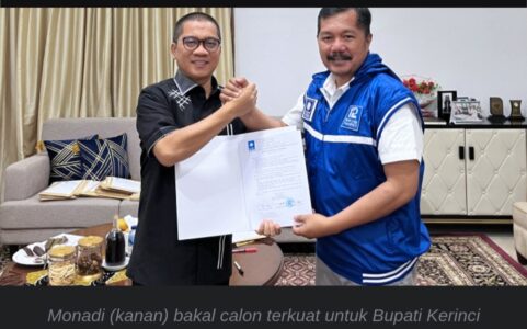 Bakal Calon Bupati (Bacabup) Kerinci Monadi ternyata telah mengantongi rekomendasi dari Dewan Pimpinan Pusat (DPP) Partai Amanat Nasional (PAN) untuk maju di Pilkada Kerinci 2024.