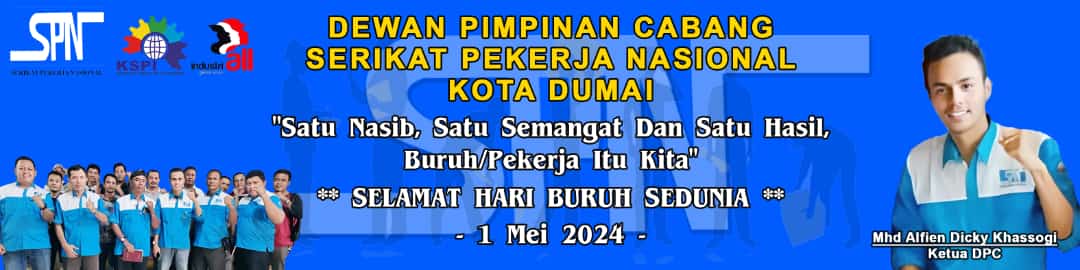 Satu Nasib…Satu Semangat…Satu Hasil… Pekerja/Buruh Itu Kita, Serikat Pekerja Nasional Kota Dumai Ucapkan Selamat Hari Buruh Sedunia 2024