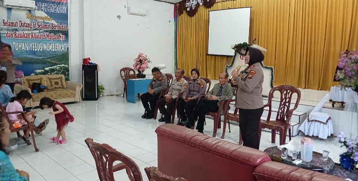 Ditempat yang sama Kanit Bintibsos Satbinmas Polresta Pekanbaru Iptu Budhi Dianda menyampaikan harapan kepada jemaat untuk para orang tua tolong jaga anak-anak.