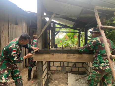 Tingkatkan Kesejahteraan Masyarakat, Satgas Yonif 122/TS Membangun Fasilitas Umum MCK di Kampung Kalifam Papua