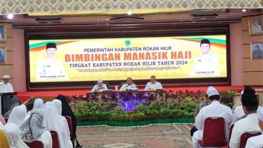 Setelah berlangsung selama tiga hari, bimbingan manasik haji tingkat Kabupaten secara resmi ditutup Bupati Rokan Hilir (Rohil) Afrizal Sintong SIP yang diwakili Sekda Rohil H Fauzi Efrizal, Rabu (8/5/2024).