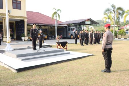 Kapolres Kampar AKBP Ronald Sumaja yang di wakili oleh Waka Polres Kampar Kompol Andi Cakra Putra menjadi Inspentuk Upacara kegiatan ini juga dihadiri oleh Pejabat Utama Polres Kampar, Kapolsek Jajaran dengan pserta personil Polres Kampar.