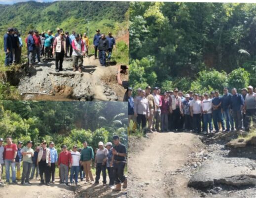 Walikota Sungai Penuh Ahmadi Zubir bersama Asisten 1 dan Kadis PU Kota Sungai Penuh didampingi Ketua Lembaga Adat Depati IV Kumun Debai Bapak Rafli Depati beserta Depati dan Ninek Mamak, Camat dan Kepala Desa se Kecamatan Kumun Debai meninjau titik Jalan dari Desa Ulu menuju RKE yang longsor dan badan jalan yang tergerus air, Kamis (09/05/2024)