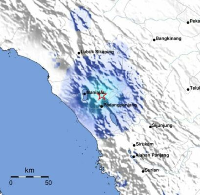 “Episenter gempabumi terletak pada koordinat 0.33° LS ; 100.40° BT, atau tepatnya berlokasi di darat pada jarak 4 KM Bukittinggi, Sumatera Barat pada kedalaman 7 km,” sambungnya melanjutkan.