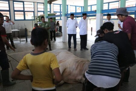 Sebelum dilakukan pemotongan telah dilakukan pemeriksaan ante mortem dan setelah dipotong dilakukan pemeriksaan post mortem pada daging kurban.