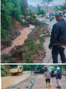 Lanjut Kapolsek, Hujan deras membuat jalan tertimbun. Dan air meluap ke badan jalan. “Drainase jalan tertimbun tanah , drainase tersumbat, air meluap ke badan jalan,”tandasnya .
