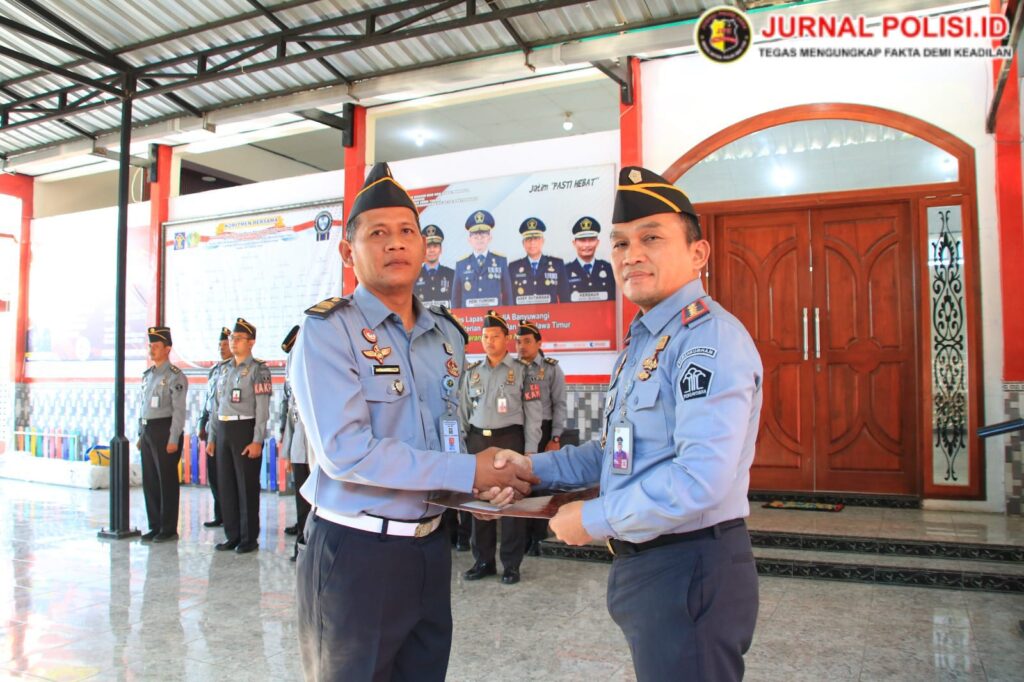 Lembaga Pemasyarakatan Kelas IIA Banyuwangi Kantor Wilayah Kementerian Hukum dan Hak Asasi Manusia Jawa Timur melaksanakan giat rutin apel pagi sebelum memulai tugas fungsi masing-masing, sekaligus melaksanakan apel kenaikan pangkat 1 orang pegawai di Depan Aula Sahardjo Lapas Kelas IIA Banyuwangi, pada Rabu (19/06/2024) pagi.
