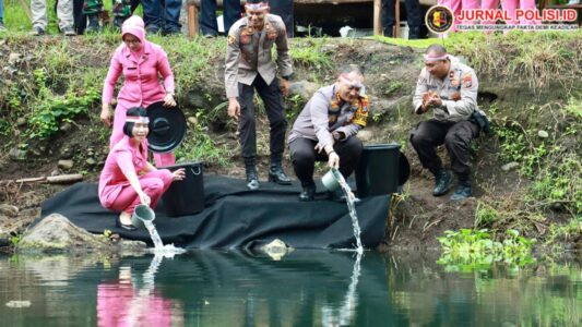 Polresta Banyuwangi menggelar kegiatan tabur benih ikan sebagai bagian dari peringatan Hari Bhayangkara ke-78. Acara ini dilaksanakan mulai pukul 09.00 WIB di Kolam Kampung Jagong, Desa Wonosobo Kec. Srono Banyuwangi, Kamis (27/06/2024).