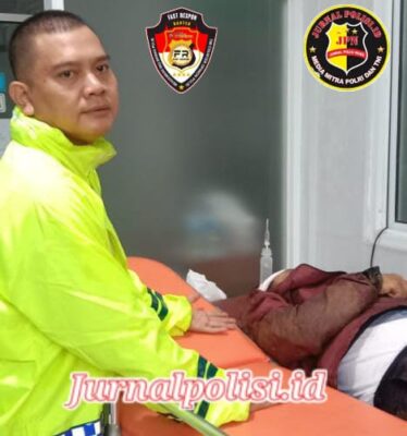 Cepat Tangani Laka Lantas, Anggota Polsek Cikande Bawa Korban Jalan Licin ke Puskesmas