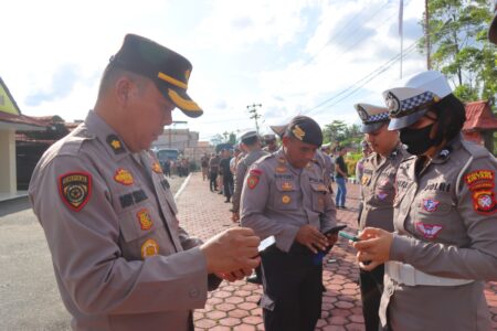 Mengecek satu-persatu handphone personel, Kapolres menegaskan agar pengecekan dilakukan secara menyeluruh.