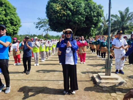 Ketua Persatuan Wanita Olahraga Seluruh Indonesia (Perwosi) Kabupaten Pesisir Barat (Pesibar), Septi Heri Agusnaini, S.E, M.H., menghadiri lomba senam tingkat Kecamatan, di halaman Kantor Kecamatan Bangkunat, Minggu (9/6/2024).