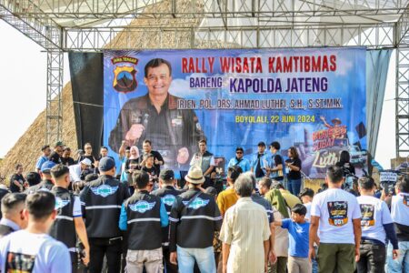 Ajakan ini disampaikan Kapolda Jateng dalam acara Rally Wisata Kamtibmas Bareng Kapolda yang diadakan di Area Honai Waduk Cengklik, Kabupaten Boyolali pada Sabtu (22/6/2024) siang. Kegiatan tersebut turut dihadiri oleh sejumlah Pejabat Utama (PJU) Polda Jateng, Kapolres Ekswil Surakarta dan ratusan peserta Rally Kamtibmas dari berbagai komunitas otomotif.
