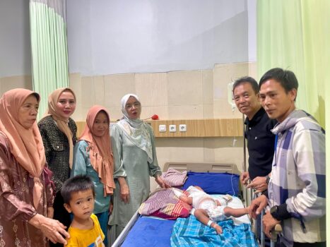 Kepala Dinas Komunikasi, Informatika, Statistik dan Persandian (Diskominfotiksan), Suryadi, S.IP., M.M., menginformasikan bahwa, Ketua Tim Penggerak-Pemberdayaan Kesejahteraan Keluarga (TP-PKK) Kabupaten Pesisir Barat (Pesibar), Septi Heri Agusnaeni, S.E., M.H., mengunjungi, Naufal anak usia satu tahun, yang mengalami luka bakar serius di badan akibat masuk dalam kuali yang tengah digunakan memasak yang tengah mendapat penanganan medis di Rumah Sakit Urip Sumoharjo, Bandar Lampung, Selasa (11/6/2024) malam.
