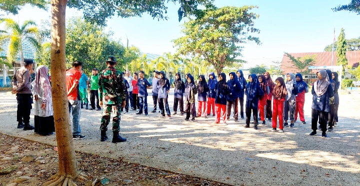 Koramil 01-/Polut Bersama Siswa SMP Negeri 1 Polut Kerja Bakti Bersihkan Depan Sekolah