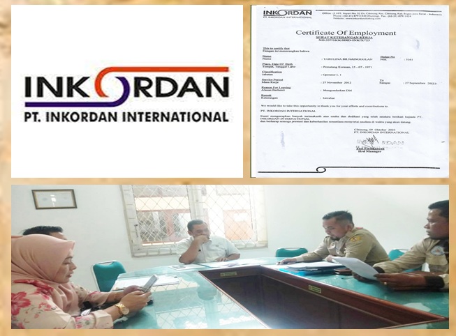 Sebagaimana sebelumnya PT. INKORDAN INTERNASIONAL telah melakukan PHK tanpa meberikan, Pesangon dan hak lainnya sepeserpun terhadap eks karyawan PT. INKORDAN INTERNASIONAL yang sedang didampingi oleh LSM BAKORNAS.