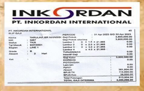 Padahal Eks karyawan itu telah berkeja di PT. INKORDAN INTERNASIONAL sejak tahun 2010 hingga September 2023. Selain tidak mendapat Pesangon, Gaji Pokoknya juga malah dipotong dengan alasan tidak mencapai target produksi team, padahal gaji pokok karyawan PT. INKORDAN INTERNASIONAL berada dibawah UMR Kabupaten Bogor.