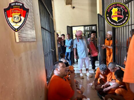 Usai melaksanakan shalat Ied berjamaah dalam ruang sel, para tahanan yang sedang menunggu proses hukum tersebut didatangi Kapolres Serang AKBP Condro Sasongko dan Wakapolres Kompol Ali Rahman CP sambil membawa bungkusan makanan.