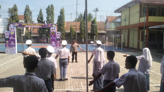 Satbinmas Polres Kebumen melatih para murid SMK Muhammadiyah yang akan dijadikan sebagai Patroli Keamanan Sekolah (PKS), Jumat 14 Juni 2024.