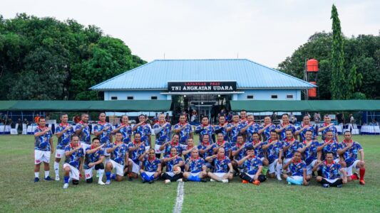 Panglima Komando Operasi Udara I Marsda TNI Mohammad Nurdin mengikuti pertandingan sepak bola sinergitas gabungan TNI – Polri bertempat di Lapangan Sutasoma, Halim Perdanakusuma, Jakarta Timur. (Selasa kemarin, 4-6-2024).
