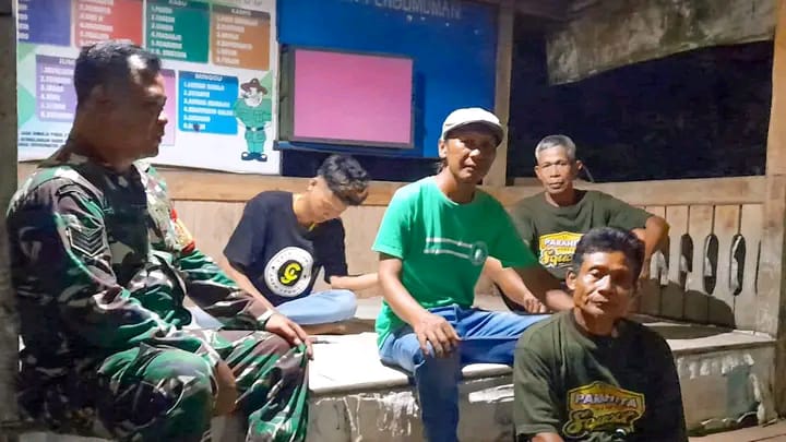 Dalam rangka memastikan situasi kamtibmas di wilayah binaan pada malam hari, Serka Sakirin Babinsa Koramil 05/Nusawungu melaksanakan pemantauan dan komsos bersama masyarakat yang sedang melaksanakan ronda bertempat di Pos Ronda RT. 04 RW. 05 Dusun Danasri Desa Danasri, Kecamatan Nusawungu, Kabupaten Cilacap, Selasa (18/06/2024).