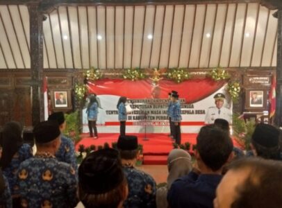 Sebanyak 215 kepala desa di Kabupaten Purbalingga resmi menerima Surat Keputusan (SK) perpanjangan masa jabatan dari semula 6 tahun menjadi 8 tahun. Penyerahan SK tersebut dilakukan pagi tadi di Pendopo Dipo Kusumo oleh Bupati Purbalingga, Dyah Hayuning Pratiwi, pada Jumat, 21 Juni 2024.