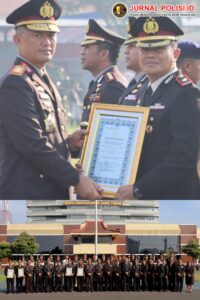 Dalam Upacara Peringatan Hari Lahir Pancasila yang digelar di Mapolda Jatim itu, Kapolresta Banyuwangi, Kombes Pol Nanang Haryono,S.H., S.I.K., M.Si menerima Penghargaan oleh Kapolda Jatim.