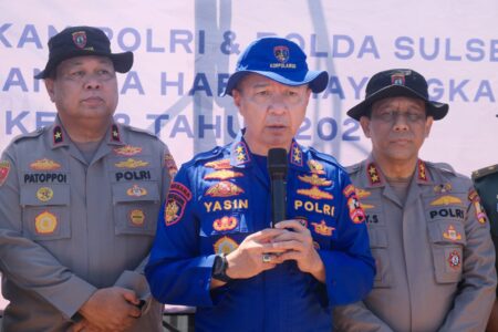 Kakorpolairud Baharkam Polri Irjen Pol M. Yassin Kosasih, S.I.K., M.Si., M.Tr.Opsla memimpin acara Bakti Sosial Penanaman Pohon Mangrove dalam rangka Hari Ulang Tahun (HUT) Bhayangkara ke-78 dan Rakernis Baharkam Polri di Pantai Takalar, Parialau Kabupaten Takalar, Selasa (04/06/24).