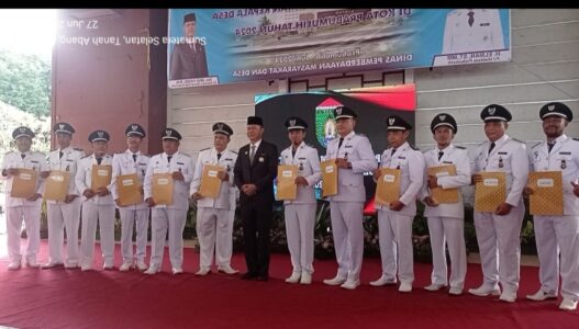 Pejabat Walikota Prabumulih Sumatera Selatan mengukuhkan 12 Kepala Desa di Kota Prabumulih bertempat di Pendopoan Rumah dinas Walikota Prabumulih. Kamis, 27/06/2024.