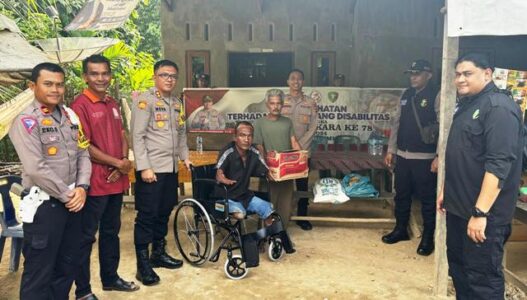 Dalam kesempatan tersebut, Kapolres Aceh AKBP Nova Suryandaru, S.I.K. menyerahkan bantuan berupa kursi roda dan paket sembako kepada Mubarok sebagai bentuk kepedulian Polri (Polres Aceh Timur) terhadap masyarakat yang membutuhkan, khususnya penyandang disabilitas.