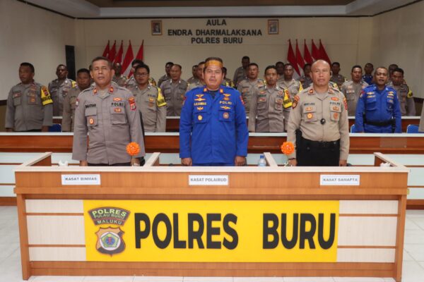 Bertempat Di aula Endra Dharmalaksana Kasat Pol Air AKP A.Sambas Kasat Samapta Iptu Andre Layan ,Kasat Binmas Iptu Bahctiar Tepo Berserta Seluruh Bhabinkamtibmas Polres Buru Mengikuti Rakernis Bharkam Polri Secara Daring