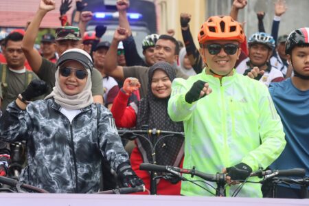 Polres Aceh Timur Polda Aceh menggelar olahraga bersama sepeda santai dengan Forum Koordinasi Pimpinan Daerah (Forkopimda) Aceh Timur, komunitas sepeda dan masyarakat, Sabtu, (22/06/2024).