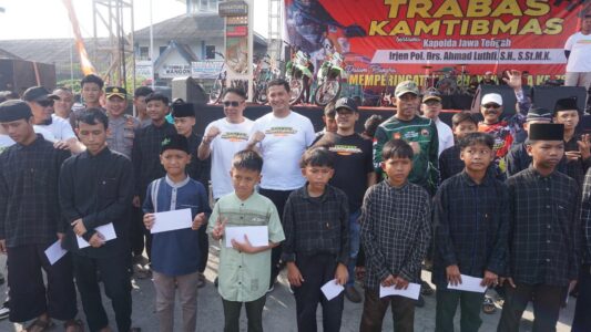 Polresta Banyumas Polda Jateng menggelar “Trabas Kamtibmas bareng Kapolda Jateng” yang digelar di Kecamatan Wangon, Kabupaten Banyumas, Minggu (23/6/24). Pada kegiatan tersebut Polresta Banyumas juga menggelar aksi bakti sosial, bakti kesehatan hingga bazar sembako murah untuk masyarakat.