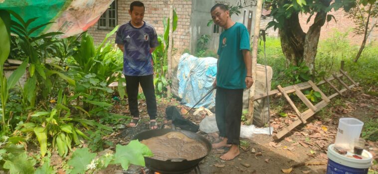 Indra Romianto/Domi warga teratai menceritakan, ” Proses pembuatan juada kacau ini Bukanlah sedikit proses nya membutuhkan tenaga yang Extra dan Banyak Orang untuk proses pengadukannya saat di masak di dalam kuali. Trus Bahan nya juga tidak sedikit diantaranya Santan kelapa _ gula putih_ tepung_ gurah Aren_ danlain lain.
