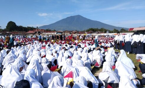Sebanyak 15 ribu siswa dari sekolah dasar (SD) dan sekolah menengah pertama (SMP) se-Kota Bukittinggi berkumpul di Stadion Atas Ngarai pada Senin pagi, 22 Juli 2024.