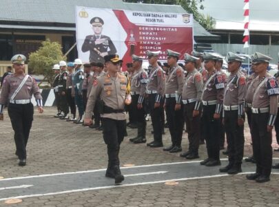 Apel Gelar Pasukan jelang Operasi Patuh Salawaku Tahun 2024 Kapolres Tual AKBP Adrian SY Tuuk, S.I.K.,M.H imbau warga patuhi aturan, dan selalu mengecek kelengkapan kendaraanya.