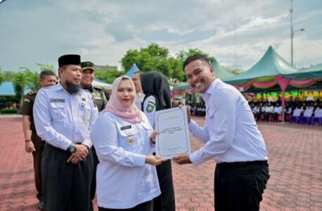 Bupati Bengkalis Kasmarni Menyerahkan SK PPPK Secara Simbolis di Lapangan Kantor Bupati Bengkalis.
