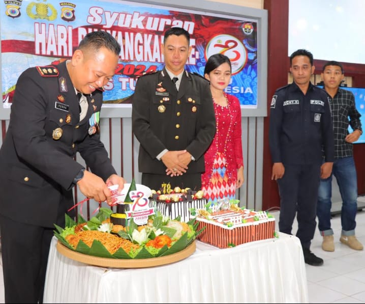 Sementara itu pelaksnaan Hut Bhayangkara Polres Tual juga melakukan syukuran yang berlangsung di Aula Jananurga, ditandai dengan pemotongan Nasi Tumpeng dan diberikan kepada personil yang bertepatan tanggal kelahiranya di ’01 Juli 2024.