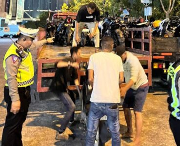 Dengan melakukan penilangan terhadap 40 Unit Kendaraan yang menggunakan knalpot tidak sesuai spesifikasi teknis, tidak menggunakan TNKB dan tidak dilengkapi surat-surat kendaraan.